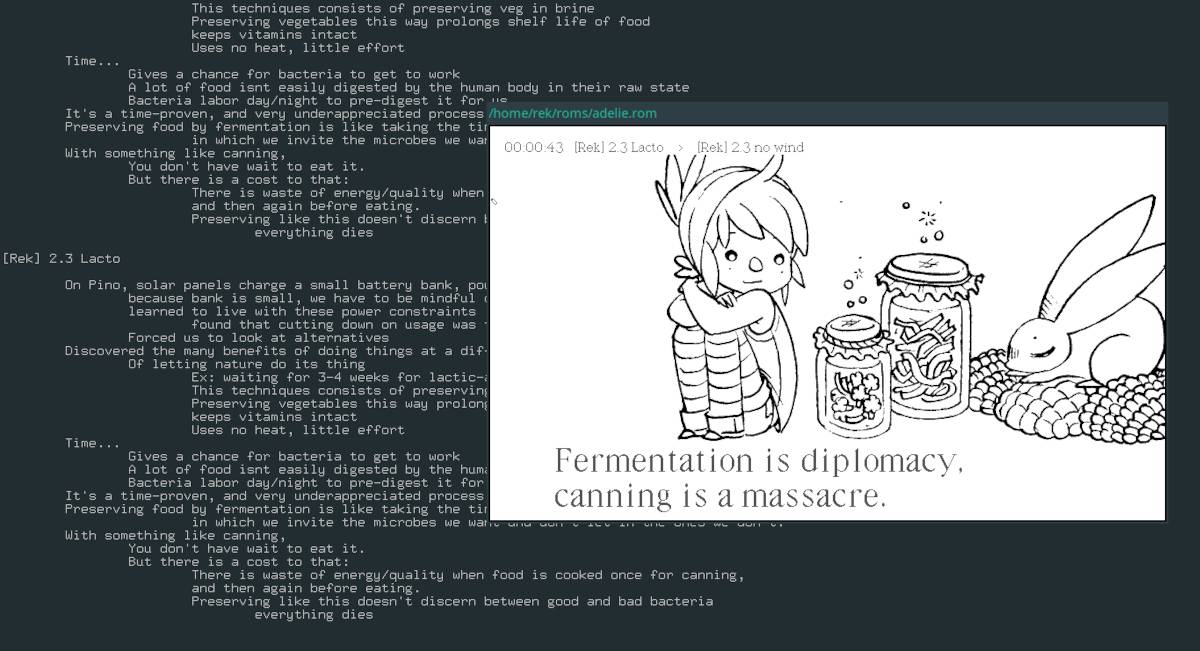 uxnemu bin/adelie.rom slides.txt