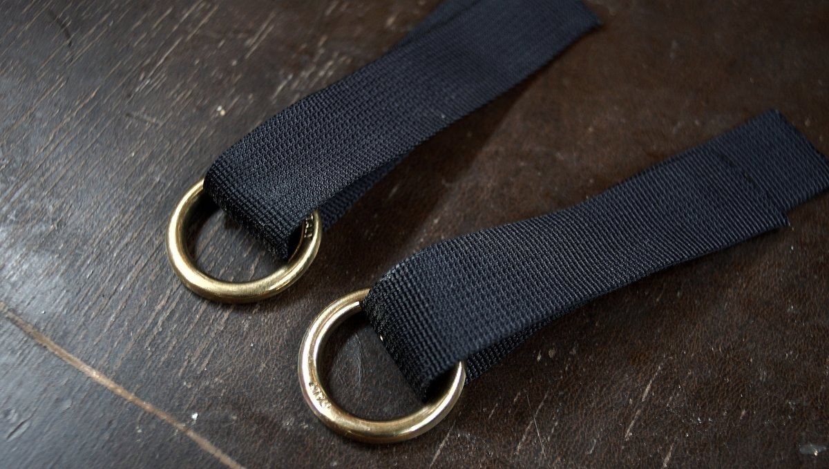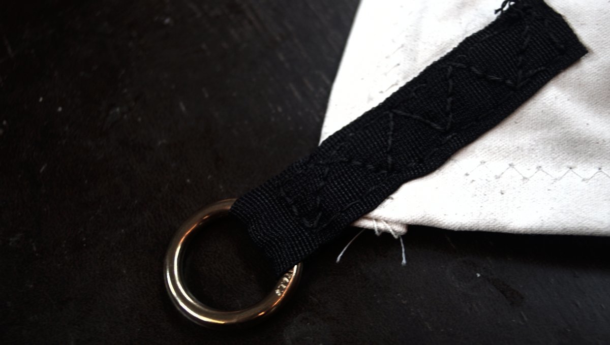 We bought 4 bronze rings and some nylon webbing and stitched it onto the four corners.