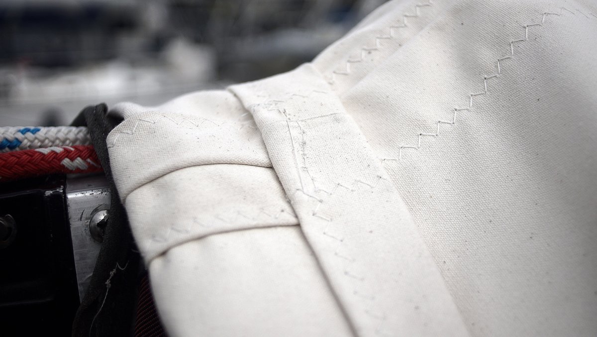 The above photo is the main seam, laying over the boom. The end is folded over to show the underside.