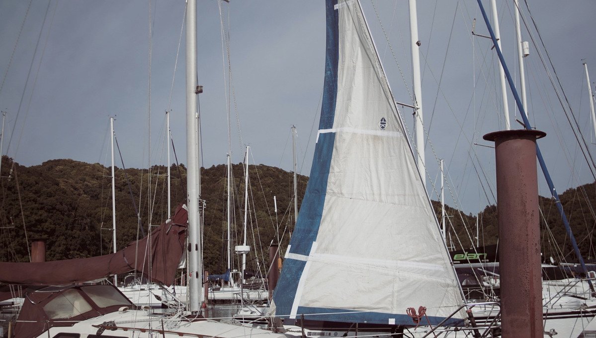 The Frankensail project was a success. We only flew it once during our passage from Japan to Victoria, raising it behind the headsail for fun. We're happy to report that our jib survived the trip.