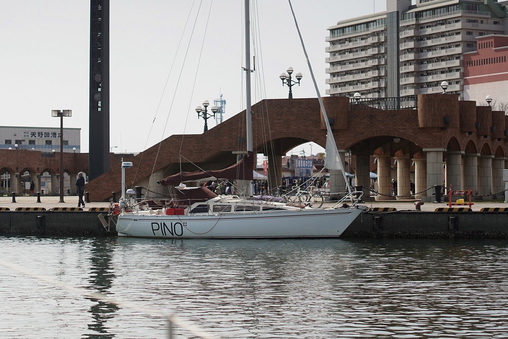 When we got near the breakwater, we rolled in the jib and started the engine. Just as we were coming in, we heard a call on the radio. "Pino, Pino, this is Shimizu port radio." This was our first time in a big Japanese port, we didn't expect anyone to hail us. "What is your intention Pino." They asked. "We are going to Shimizu marina." I replied. "Do you have a local agent?" Neither of us knew what that meant by that— a local agent? I thought it may have been some mistranslation, we had the permits to get into any port in Japan. No one had ever told us anything about needing a local agent. "Hum, we don't have that." I said. "Then I am sorry, you cannot enter Shimizu Port."