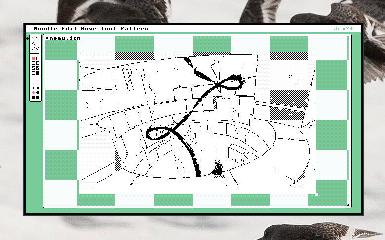 Noodle is written in the Uxntal programming language and is compiled with the Uxn assembler, it features a handful of patterns, a pixel-perfect clean up brush, zoom functionalities and can export and import bit maps.