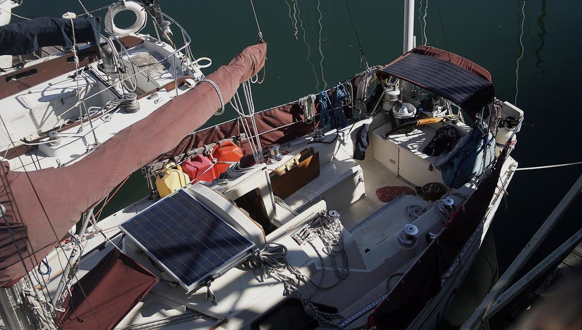 - Renogy 100-watt monocrystalline hard panel (in front of companionway)
