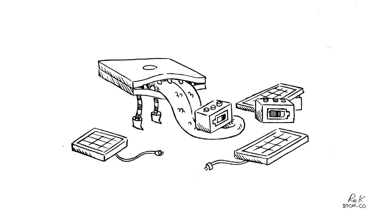 - Renogy 100-watt monocrystalline hard panel (on mini-bini top)