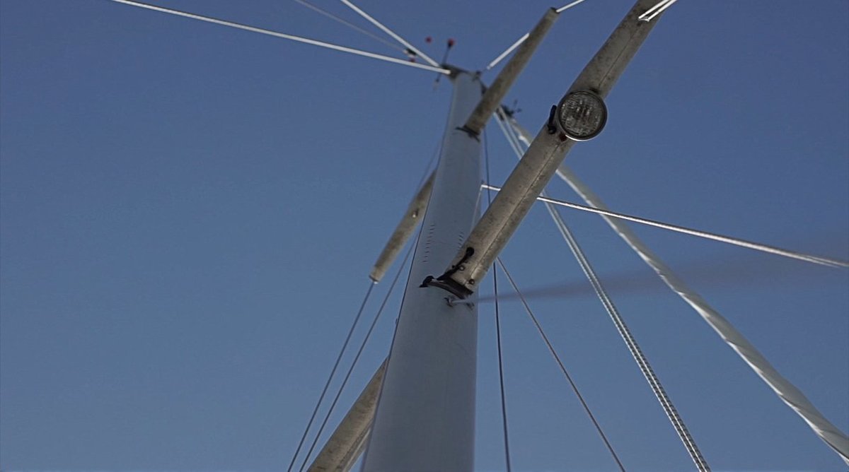 Because the weather was kind we got to replace the sheave at the top of the mast on the same day that we took it off. It is very rare for us to go up the mast twice in the same day.