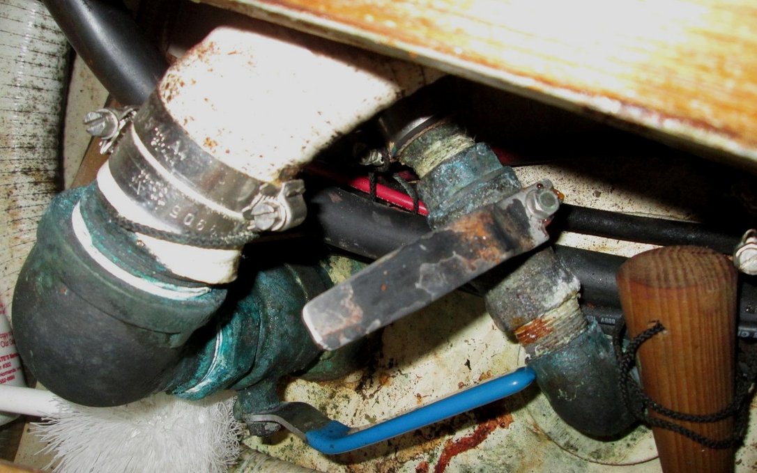 When we bought Pino in 2016, the thruhulls were old. In the galley, they had an aged appearance but worked fine. In the head, they were older, but a bit stiff. Then, after 5 years of hard Pacific ocean sailing, they deteriorated a lot and we decided to replace them.