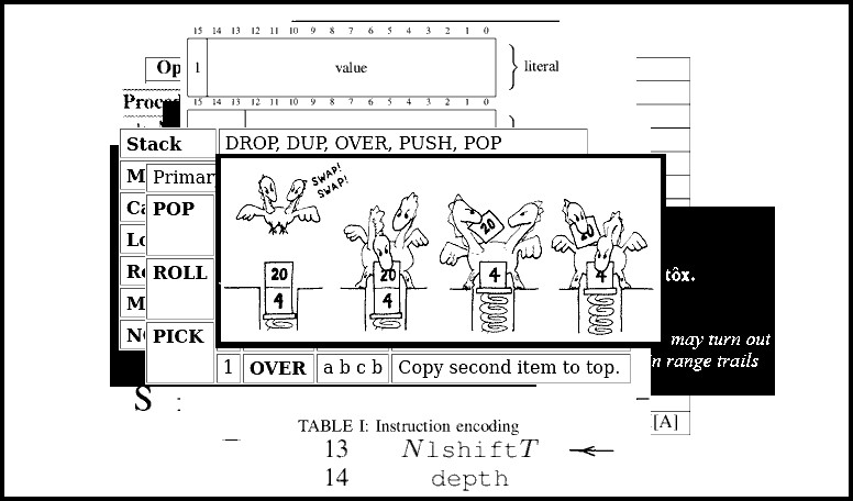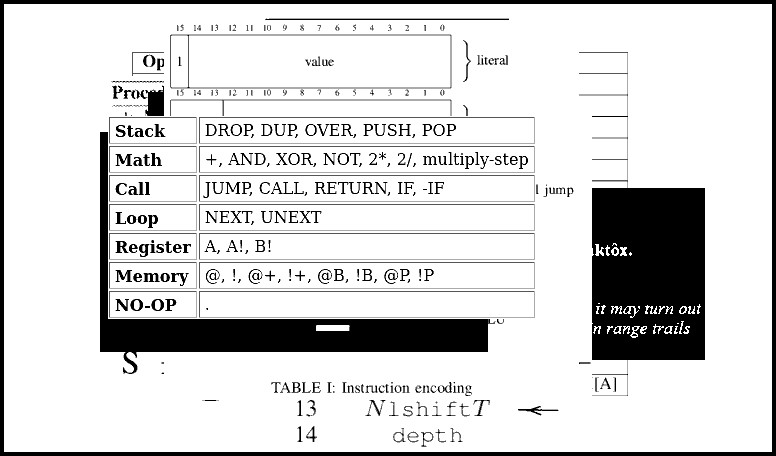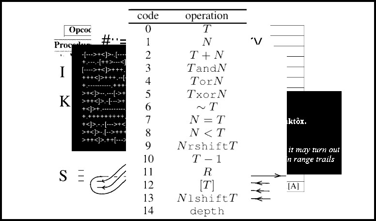 Machine Forth was something I stumbled upon after. Chuck Moore wrote Forth, and then he thought it too complicated. I thought, "what do you mean it's complicated? There's like no syntax, no nothing. It's space-divided language. Implementing a Forth system is really fast." Chuck More, being himself, thought that he could do without all this 'cruft'. He reduced even further to Machine Forth which has 32, or 24 opcodes.
