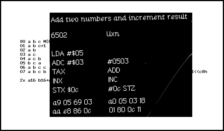 6502 has a lot of mnemonics. When trying to implement the 6502 as a VM, it is possible to make a naive implementation in a week, or in a weekend if you don't do anything else. My knowledge of C is very limited, but luckily I had help. I wondered if this instruction set could be reduced further...