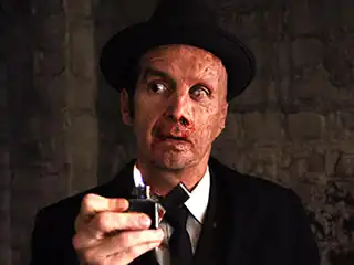 - Affably Evil: When he's cutting up Elizabeth Short's body.