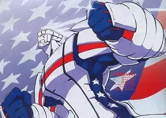 Welcome to Eagle Land, USA bitches! We're rich, industrious, militarily powerful and burningly patriotic! How to show that in fiction? Why with Giant Robots of course. An America Robot, in short, is any super fighting machine that hams up the America to the power of eleven. Expect them to be decked out in the stars and stripes and packing the heavy artillery (as well as having a burning American pride).