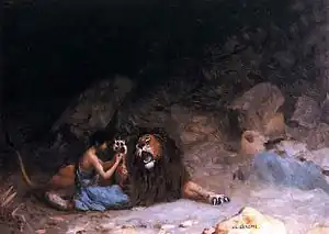 Androcles and the Lion, a 1912 play by George Bernard Shaw, is a re-telling of one of Aesop's Fables. In the fable and the play, Androcles, a Christian slave in Roman times, is surprised by a lion in the forest. Seeing that the lion has a thorn in its paw, Androcles pulls the thorn out. Shortly thereafter, Androcles is arrested and thrown to the lions in the Coliseum...only to face the lion that he helped. The lion refuses to harm Androcles--and although, in Shaw's play, the Romans are still willing to hurt what they call "a Christian sorcerer", they're not nearly so eager to fight their way past an angry lion to do so.