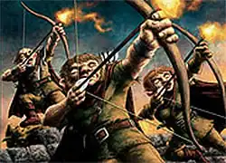 - The Battle for Middle-Earth plays this in a similar manner to the above. Fire Arrows, an upgrade for most archer units, adds a decent damage boost vs most normal units, and makes them much more effective vs buildings. It also allows them to cause damage to the wooden walls and gate of Rohan castle defenses. In BFME2 Men of the West keep fire arrows, but Elves get silverthorn blue-glowy arrows. Dwarves get axe throwers (upgraded by forged axes) and human archers of dale—upgraded with fire arrows. All the bad guys get Orcfire arrows, because fire set by Orcs is just better.