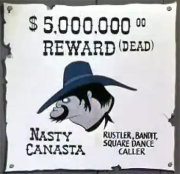 - Drip-Along Daffy: Nasty Canasta's wanted poster (the page image) says "Rustler, bandit, square-dance caller".