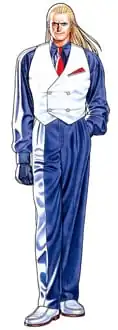 - Adaptation Dye Job: He's raven-haired in the anime special, which was taken from the Japanese live-action commercials for Art of Fighting 2.