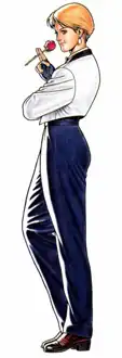 Daughter of Ryohaku Todoh, who has disappeared. She sets out to find him, but has some trouble as she only speaks Japanese. In her Victory Pose, she pulls out a phrasebook. She keeps up the family's rivalry with the Sakazakis (her team in The King of Fighters XI is the Anti-Kyokugen Team). |