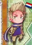 - Rags to Riches: He's seen as a rather poor and struggling teenaged nation (while his younger sister Belgium is a Child Prodigy businesswoman), then he's seen as kinda more affluent but under Spain's wing (that he's not too happy about), and later he has become quite the overseas empire... and a stoic, penny-pinching Non-Idle Rich.