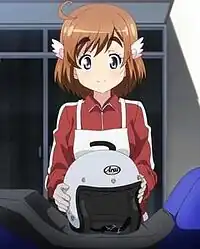 A freshman student who enters the school at the start of the next school year, she is the daughter of a famous motorcycle racer and is herself a champion minibike racer. She is 144cm (4'8.5") tall, and very sensitive about her height; she initially refuses to have anything to do with regular motorcycles because she's too short to reach the ground from standard seat heights. She does not want to admit this, though, and regularly avoids anything having to do with regular motorcycles, sometimes even resorting to a stream of lies and justifications. Oddly, she is absolutely convinced that the height of a motorcycle seat is absolutely critical to its performance, being carefully calculated by the manufacturer for optimal position, and initially resists the idea of customizing a bike in any way to make it easier for her to ride.