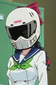 A faceless, voiceless figure of mystery, Lime was the only member of the biking club until Onsa and Hane together went looking for it. They and the other girls all assume Lime is an upperclassman, but the truth is she's a bike racer who's at least in her thirties (and maybe older), and has been asked by the principal of the school to watch over the biking club. She never speaks, and she never takes off her helmet, and her history is Shrouded in Myth. Every few episodes we find someone older who calls her "sempai" and knows of her from past association, and who reveals more about her almost legendary past. Oddly, though, she never seems out of place or uncomfortable spending all her time with schoolgirls who are so much younger than she is.