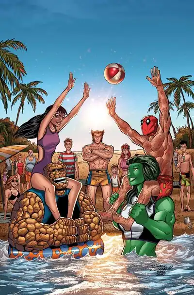 - Marvel had several Swimsuit Specials in the 1990s featuring such exotic locales as Dinosaur Island, Madripoor, and the Dark Side of the Moon. This page's image is from the 2019 revival of the line for the company's 80th anniversary.