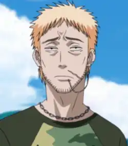 - Delayed Reaction: After challenging Oga in their second encounter, he winds up on the end of a Megaton Punch that destroys part of the roof. He still stands up long enough afterward to warn some St. Ishiyama students away from the ensuing violence before losing consciousness.