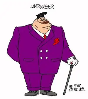 Lawrence Limburger, otherwise known as "Boss", "Mister Limboiger" and "Stinkface", is a well-spoken denizen of destruction and disaster. He is the epitomy of greed, with a hunger for power that would outdo most dictators. His most fervent want is to become the High Poobah of not only Earth, but Plutark as well, and if it weren't for those stupid gerbils on bikes he'd have his wish by now. It's not for lack of trying that he's still a much-maligned minnow in the pool of power- it's that through a combination of incompetent goons, bad luck and not crossing one T that has him pulling his fins in frustration.