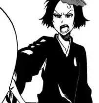 Lieutenant of the 1st squad and... not a whole lot besides that. Virtually everything we know about him comes from the Data Books as he's someone who stays in the background and almost never fights in the manga. The first time he came to notice was when Ichigo defeated him and two other vice-captains shortly after obtaining bankai. He has the most unusual eyes in the manga: they're solid gold in colour and lack both pupils and sclera. His Zanpakuto is named Gonryomaru.