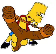 - The Simpsons: Bart Simpson is probably the most well-known example, although he hasn't used his slingshot much of late. Inspired by Dennis the Menace, Word of God is that Matt Groening wanted to ensure Bart Simpson used his slingshot, because his recollection was that Dennis just carried one.