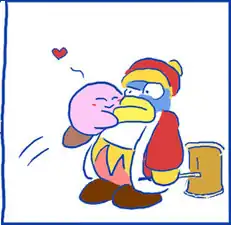 - King Dedede defeats Meta Knight because he is the only one allowed to defeat Kirby. Kirby hugs him anyway. Awwww.