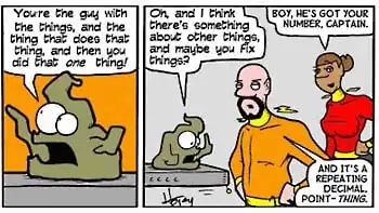 - Magic: The Gathering: Krark-Clan Engineers. "Well, I jammed the whatsit into the whackdoodle, but I think I broke the thingamajigger."