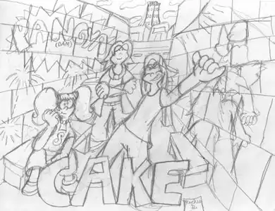 CAKE (the title is always capitalized) is a little-known fan web comic that runs on Drunk Duck as well as Deviantart. It the story of three siblings: Fudge Cakea, the middle child and typical act-first-ask-questions-later kid; Mix Cakea, the youngest and usually the bossiest of all three; and Batter Cakea, the intellectual eldest son. The trio go to school together with of many familiar characters from TV, manga and comics. Oh, and did I mention their hometown is set in Townsville and their school is anything but normal? Yeah...