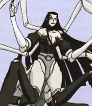 - Stripperiffic: In her demon form, she's basically wearing a leotard and thigh-high boots. (And her disguised form in the 1870s isn't much better.) Of course, this becomes Fan Disservice once her lower body is replaced with that of a large spider's...