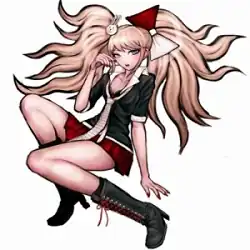 Touko has been writing famous romance novels since before she was ten years old. However, she's never had a romance of her own, much less a friend; she was bullied as a child and has a severe persecution complex, always assuming that people think the worst of her. She's pessimistic and hard to get along with as a result. She has multiple personalities, the other one being the infamous serial killer, Genocider Syo. Syo is revealed during Chapter 2 when Togami manipulates the crime scene to implicate her in the murder. Still alive in Chapter 4.