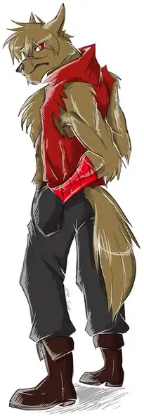 - Depending on the Artist: He could be on the next trope-picture, he's nearly as bad as Ken. His general physique and proportions vary between artists, and concerning the first and last picture, even the same artist draws him in two different versions! Him being an anthropomorphic wolf and his clothes (though in newer artworks, they're almost always being red and black) generally stay the same.