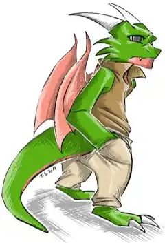 A five year old dragon. He's like a typical child, optimistic and a happy fellow. His past is even more nebulous than Jaryl's, as he was found sleeping in a capsule, loaded into a meteor, by the wolfman, having no memories of the years before. Despite that, he has declared that he wants to help Jaryl with their unexpected quest.