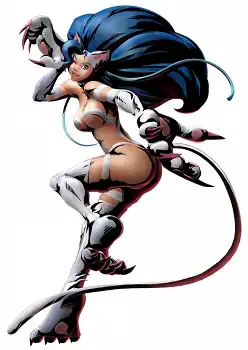 - Adaptational Villainy: Similar to Morrigan, she is completely uncaring and cruel to humans in the Udon comics. This despite not having killed any human in canon just like Morrigan. She is also far more sadistic and less innocent than she was in the games, were she only followed Jedah on his plan to get back at Morrigan and had no idea about his scheming, in the comics she is totally willingly to help him to achieve his goal if he gets her and Morrigan united again. Unlike games, she doesn't even really changes her ways, as she only agrees to help Morrigan and the rest of the characters to defeat Jedah and Jill to get Morrigan to accept to fuse with her.