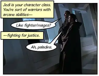 - Sliding Scale of Silliness Versus Seriousness: As great as this webcomic is, it tends to go back and forth a lot on whether it's making fun of the Star Wars movies, or it's showcasing the strained friendships of a group of roleplayers who blur the line between fantasy and reality.