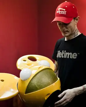 A Canadian Electronic Music producer and icon, deadmau5 (pronounced "dead mouse") is easily one of the most popular electronic artists today. Getting his professional start in 2006 when he released his first full album, Get Scraped, he is best known for the songs "Faxing Berlin", "I Remember", "Ghosts 'n' Stuff", "Sofi Needs a Ladder", and "Raise Your Weapon", as well as for wearing his eponymous mau5head during live performances. His stage name comes from an incident in which he found a dead mouse in his computer while replacing his video card - on the IRC channel he frequented, he became known as "that dead mouse guy" after recounting the incident, and decided to change his username to "deadmau5" as a joke. The name is spelled as it is because of the character limit for IRC character names (you can only fit eight and "deadmouse" is nine), with the "5" as the "s" on the end because it's cool.