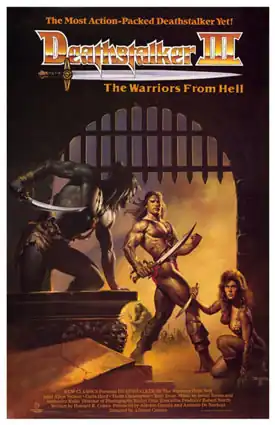 Deathstalker and the Warriors from Hell is the third movie in the Deathstalker Series. It stars John Allen Relson Nelson as the titular Deathstalker. Like John Terlesky, who played the role in Deathstalker II: Duel of the Titans, Nelson plays Deathstalker as a Lovable Rogue and Jerk with a Heart of Gold. Sadly, his Deathstalker isn't all that lovable, is a terrible rogue in the Dungeons & Dragons sense of the word (he gets caught trying to steal a horse AND sneaking around the villain's castle) and comes off as a Jerkass rather than a Jerk with a Heart of Gold.