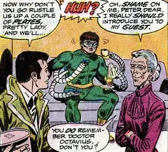 - Has happened to Spider-Man a few times. Doctor Octopus once dated Aunt May by coincidence. In Ultimate Marvel there is an infinitely creepier version when Peter comes home and finds Norman Osborn sitting on his couch watching TV and waiting for him.