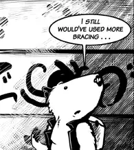 Digger: "Okay, yeah, maybe, but a really crappy crossbow. It doesn't have a crank... so you have to draw it... manually... so while you're reloading I can... walk right up... and..." {{[[[Written Sound Effect]] Thud!}}] "Ow." |