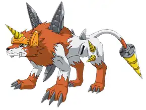 Taiki's main partner Digimon, who has a soul of rock. He protects a village in the Green Zone from evil and is a leader admired by the villagers. This hot-blooded Digimon was charmed by Taiki. In addition to being the basis of a large number of Xrossed forms, he is one of the few Digimon capable of instant natural evolution.