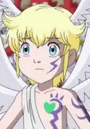 Nene's younger sister and the replacement of Yuu in the Xros Wars manga. She was in a coma and trapped inside of a crystal, forcing Nene to help DarkKnightmon so he would free her. Luckily, Taiki and the others managed to free her and she joined Xros Heart as a general.