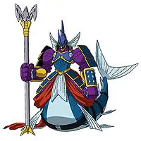 The first Legendary Digimon called from a DigiMemory. One of the Seven Great Demon Lords, representing Envy. Used to defeat Ebidramon in episode 5.