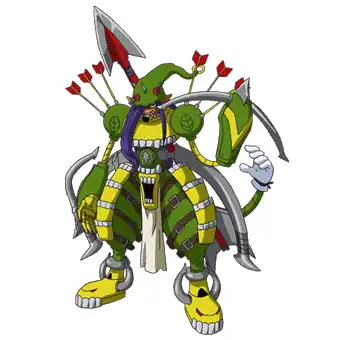 Mervamon's little brother, who ended up fighting alongside Zamielmon out of the belief that he couldn't fight the Death Generals. His sister and Xros Heart manage to convince him of the error of his ways, and he ends up helping Stingmon to protect Honey Land after Zamielmon's defeat.