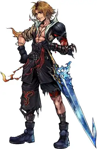 - Younger and Hipper: Tidus seems a bit more of a child here than he is in Final Fantasy X, and his new styling may have quelled some Internet Backdraft that his original appearance was too Keet for comfort. This and the Primal Stance make him look rather small, but if they followed his FFX profile to the letter, he'd be one of the taller heroes.