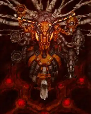 The ultimate weapon of the enemy robot forces, it is a gigantic bee that can shoot out a lot of bullets. Pictured to the right is not Hibachi itself, but rather, its regeneration chamber in DaiOuJou since Hibachi is actually too small to get an accurate image of (since it would be covered in bullets and lasers half as large as itself). It first appeared in DonPachi as the True Final Boss, although considerably larger than it was in DoDonPachi and beyond.