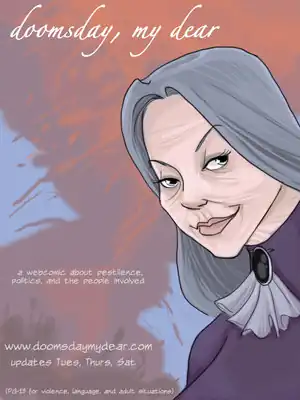 Doomsday My Dear is a apocalyptic webcomic taking place during the turn of the new millennium; it is a nazi-driven political intrigue about the outbreak of a dangerous blood plague, and what the government is doing about it.