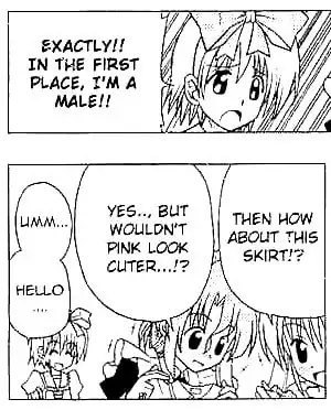 - In Hayate the Combat Butler (pictured) this is a Running Gag for poor Hayate. Nagi and Maria do this to him just for fun, and he has even been cursed into wearing only girls clothes. Some characters even think he is an actual crossdresser because of this.