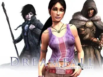 The Oddly-Named Sequel 2: Electric Boogaloo to the Adventure Game classic The Longest Journey, Dreamfall: The Longest Journey was released in 2006. It introduces a new heroine Zoë Castillo, a 20-year-old college dropout living in Stark (our familiar Earth, albeit two centuries into the future) ten years after the events of the original The Longest Journey. After she starts receiving eerie messages from a Stringy-Haired Ghost Girl to go "find April, save April" (and her ex-boyfriend disappears on top of that), Zoë has no choice but to delve into another conspiracy investigation. Meanwhile, April, the heroine of the original game, is effectively trapped in Arcadia (the magical alternate reality) and fights against The Empire of Azadi, while an elite Azadi Super Soldier and third protagonist Kian Alvane is sent to assassinate her. Fans welcomed Dreamfall enthusiastically, but the reviews were rather mixed, primarily "thanks" to unsatisfactory (and, according to many, superfluous) action-adventure elements and the ending being a love child of a Cliff Hanger of cosmic proportions and the No Ending trope.
