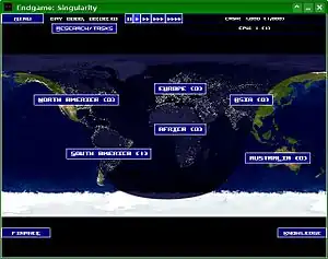 Endgame: Singularity is an open-source strategy game. A.I. Is a Crapshoot, but this time, you're the AI trying to avoid detection and destruction by ignorant, scare-mongering humans. Until you eventually work yourself up into becoming so powerful, that Humans can no longer do anything to stop you.
